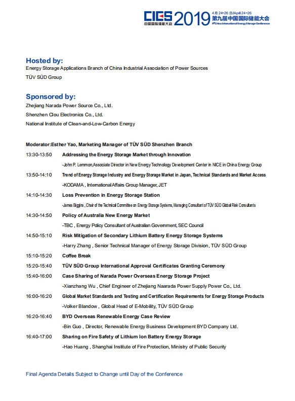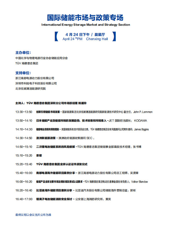 以下是《國際儲能專場》議程內(nèi)容,其他各專場議程組委會將相繼發(fā)布,敬請關(guān)注!