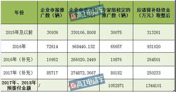 高工電動車(微信號:weixin-gg-ev)對清算文件整理發(fā)現(xiàn),終審和預(yù)撥付的補(bǔ)貼總金額高達(dá)310億元,其中186.8億元為2015年及以前、2016年、2017年的終審清算補(bǔ)貼,還有134.4億元為2017年、2018年的新能源汽車預(yù)撥款。