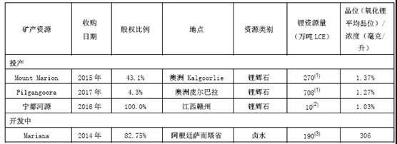 Mount Marion 為公司目前鋰原材料的主要來源。如日后出現(xiàn)鋰原材料的其他需求,公司將進(jìn)一步勘探以擴(kuò)大 Mount Marion 的鋰資源規(guī)模;