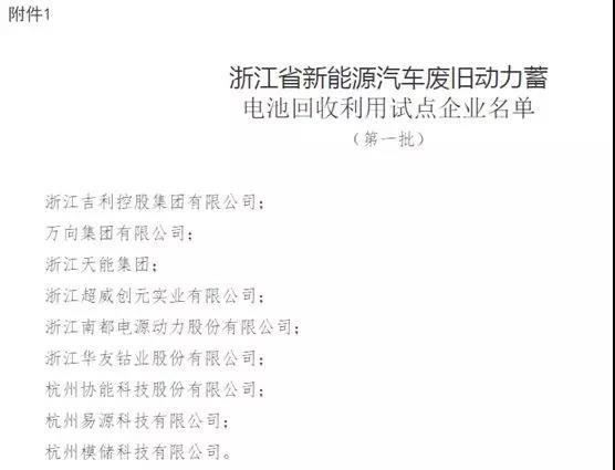 第一批試點(diǎn)企業(yè)包括:吉利集團(tuán)、萬(wàn)向集團(tuán)、華友鈷業(yè)、天能集團(tuán)、超威創(chuàng)元、南都電源、協(xié)能科技、易源科技、模儲(chǔ)科技等。