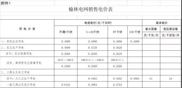 省電力公司與省地方電力(集團)有限公司榆林電網(wǎng)躉售電價每千瓦時相應(yīng)降低0.24分,降低后的躉售電價為每千瓦時0.4255元。以上價格調(diào)整自2019年4月1日起執(zhí)行。