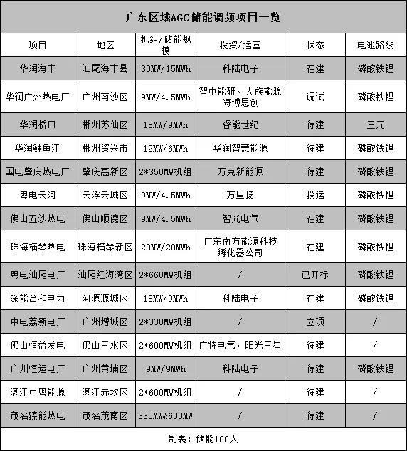 目前,據(jù)公開資料顯示,廣東火電AGC儲能調(diào)頻項(xiàng)目已達(dá)十余個,不過開工并網(wǎng)項(xiàng)目仍然較少。