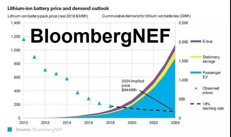 按照這一學(xué)習(xí)速率,至2024年,鋰離子電池組的價(jià)格將低于100美元/kWh.