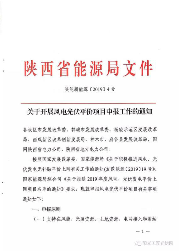 陜西能源局:關(guān)于開(kāi)展風(fēng)電光伏平價(jià)項(xiàng)目申報(bào)工作的通知
