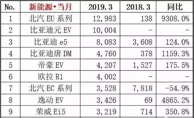 18年12月的幾個(gè)主力細(xì)分市場都表現(xiàn)很強(qiáng),加之延續(xù)期補(bǔ)貼的效果進(jìn)一步提前釋放,2月政策不明朗,因此3月的各細(xì)分市場表現(xiàn)的環(huán)比增長較大,亮點(diǎn)相對(duì)突出。
