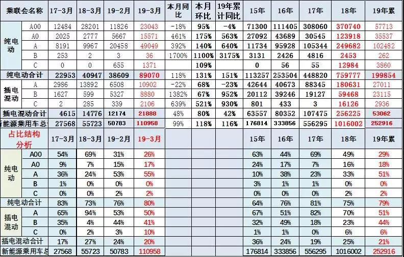 由于今年3月環(huán)比2月增長較大,因此各細(xì)分市場基本均拉升較明顯。18年的3月環(huán)比2月也是拉升,但結(jié)構(gòu)差異很大,主要也是18年3月的A級(jí)電動(dòng)車表現(xiàn)很好。