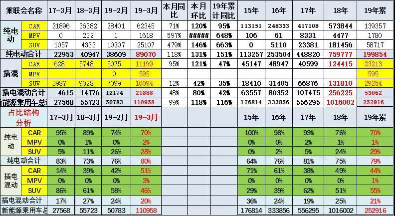 2019年的新能源車的純電動(dòng)占79%,其中3月占比78%,相對(duì)高于2018年3月的73%的水平。2019年3月的純電動(dòng)SUV的占比28%也高于2018年3月的11%表現(xiàn),結(jié)構(gòu)改善是很好的。