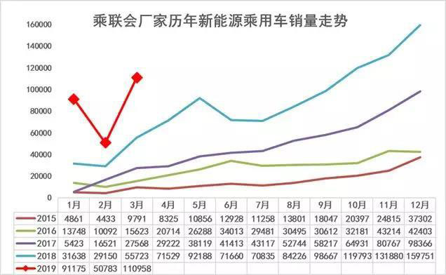 18年1-12月新能源乘用車銷售101萬臺(tái),同比增長83%。19年3月新能源表現(xiàn)仍強(qiáng),同比增速100%,超強(qiáng)于18年全年增速。