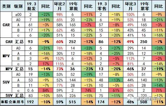 19年4月1日的增值稅調(diào)整降3個(gè)點(diǎn)是重大的制造業(yè)利好,各制造行業(yè)都受益巨大,部分車企也迅速跟進(jìn)降價(jià)行動(dòng),3月批發(fā)表現(xiàn)相對(duì)較好。