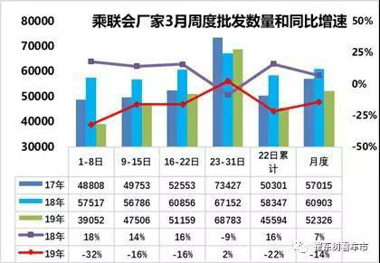 2019年3月總體來(lái)看零售相對(duì)偏弱,車市生產(chǎn)批發(fā)的增速總體在-10%左右,而零售在-12%。