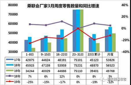 從17年和18年的3月零售走勢(shì)看,月初偏低,月末拉升的現(xiàn)象明顯,這也是3月的新車效應(yīng)等形成的月末較強(qiáng)表現(xiàn)效應(yīng)。今年的3月面臨前期沒有出現(xiàn)的稅收和環(huán)保的復(fù)雜局面,今年3月初的新車節(jié)奏相對(duì)較慢,市場(chǎng)熱度不足,未來(lái)4月應(yīng)該有改善。