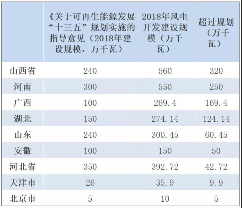 2018年底前已并網(wǎng)和已核準(zhǔn)建設(shè)的風(fēng)電項(xiàng)目(扣除應(yīng)廢止或其他原因不具備建設(shè)條件的項(xiàng)目),總規(guī)模已超過本省級(jí)區(qū)域2020年規(guī)劃并網(wǎng)目標(biāo)的,除平價(jià)上網(wǎng)風(fēng)電項(xiàng)目外,暫停新增陸上集中式風(fēng)電項(xiàng)目建設(shè)。