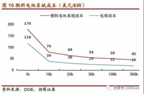 在保證規(guī)模生產(chǎn)的前提下,乘用車燃料電池的成本基本可以達到商業(yè)化水準,隨著未來技術(shù)的進步,燃料電池的成本有望進一步下降。