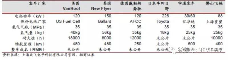 圖13 國內(nèi)外燃料電池客車參數(shù)對比