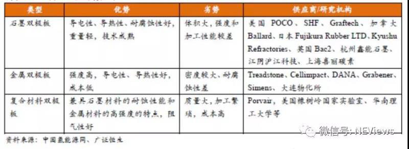 雙極板中,石墨雙極板最為成熟,金屬雙極板是未來方向。雙極板主要起到輸送和分配燃料、在電堆中隔離陽極陰極氣體的作用。雙極板占整個燃料電池重量的60%,成本的13%。主要功能有:連接單體模塊、分隔反應氣體、收集電流、散熱和排水等。其基體材料需具有強度高、致密性好、導電和導熱性能好等特點,材料的選擇將直接影響燃料電池的電性能和使用壽命。石墨雙極板目前最成熟,金屬與復合村料雙極板有較大發(fā)展空間。根據(jù)基體材料的不同,雙極板可以分為石墨雙極板、金屬雙極板和復合材料雙極板,其中石墨雙極板最早被開發(fā)使用,前技術(shù)已經(jīng)成熟,并已實現(xiàn)商業(yè)化大規(guī)模應用了。金屬雙極板是替代石墨雙極板的最使選擇,表面改性的多涂層結(jié)構(gòu)金屬雙極板具備較大的發(fā)展空間。金屬雙極板的機械性能、加工性能、導電性等都十分優(yōu)異,易于批量化生產(chǎn)降低成本。