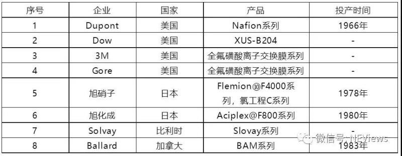 圖9 全球主要PEM膜生產(chǎn)廠家