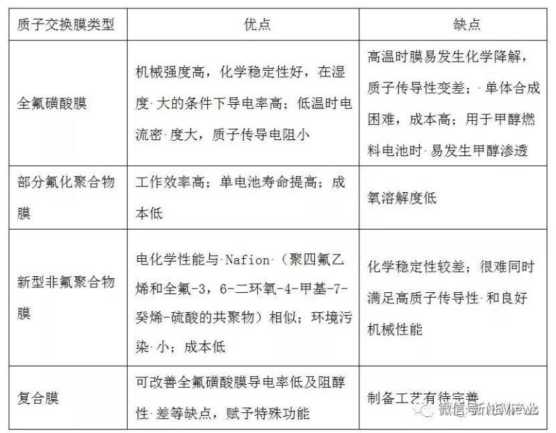 圖8 各類質(zhì)子交換膜優(yōu)缺點比較