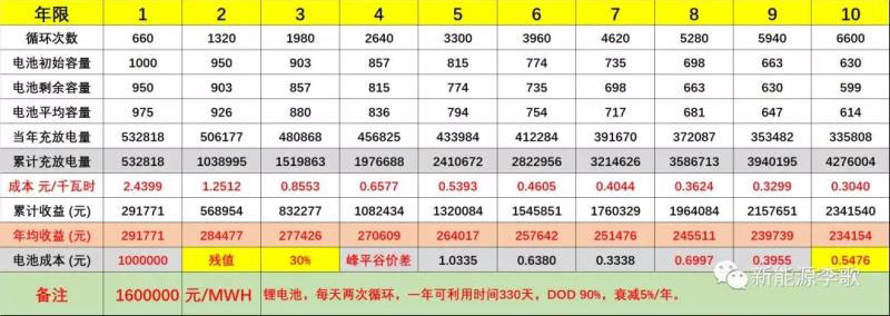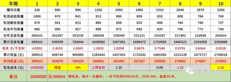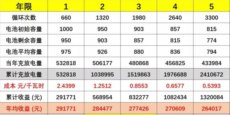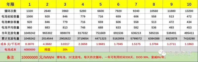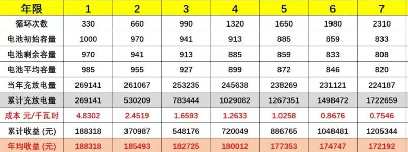 b.剩余容量80%,循環(huán)次數(shù)3800次左右,即4.2年,110萬(wàn)元;