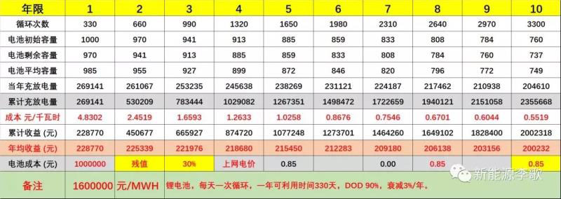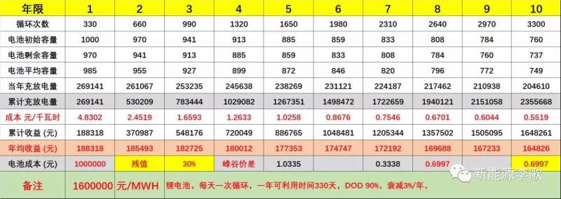 a.1MWH儲(chǔ)能系統(tǒng),峰谷價(jià)差第一年收益為18.83萬(wàn)元/年;