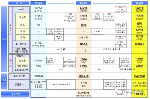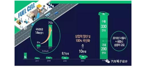 氫動(dòng)力汽車將在 2019 年普及 4000 輛,到 2022 年普及 8.1 萬(wàn)輛,2030 年普及180 萬(wàn)輛。 2040年氫燃料電池汽車?yán)塾?jì)產(chǎn)量增至620萬(wàn)輛(這個(gè)韓國(guó)本土消化290萬(wàn),其他的330萬(wàn)要出口到全球市場(chǎng))