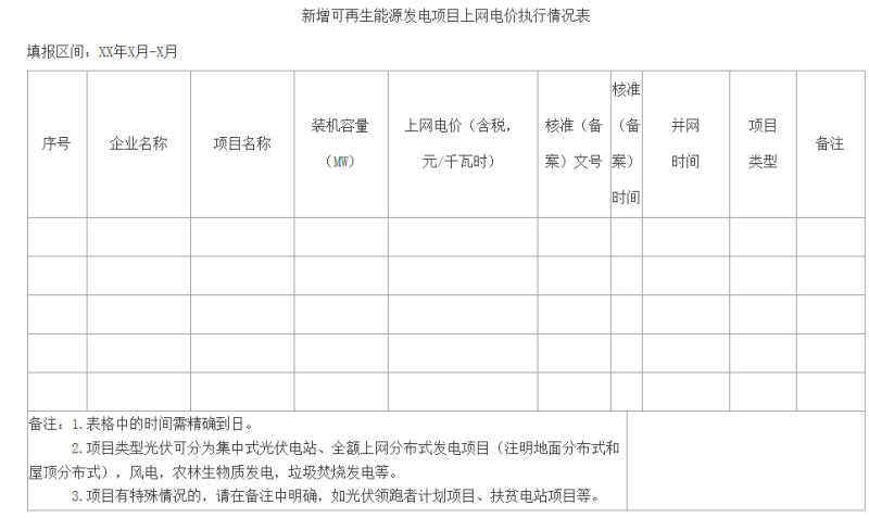 附件:新增可再生能源發(fā)電項(xiàng)目上網(wǎng)電價(jià)執(zhí)行情況表