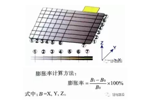 膨脹率計(jì)算用二次元測(cè)量陽(yáng)極片X、Y方向尺寸,千分尺測(cè)量Z方向厚度,在沖片以及電芯滿充后分別測(cè)量。