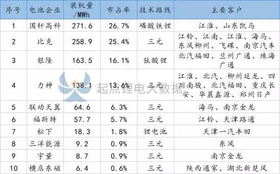 圓柱:國(guó)軒高科/比克/銀隆前三