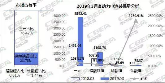 伴隨著外資企業(yè)進(jìn)入,新能源補(bǔ)貼政策持續(xù)調(diào)整,作為新能源汽車產(chǎn)業(yè)鏈重要上游產(chǎn)業(yè),動(dòng)力電池產(chǎn)業(yè)壓力陡升。然而,重壓之下鋰電行業(yè)并未呈現(xiàn)出頹勢,動(dòng)力電池應(yīng)用分會(huì)研究部統(tǒng)計(jì)數(shù)據(jù)顯示,2019年3月我國新能源汽車動(dòng)力電池裝機(jī)量約5.09GWh,同比增長146.3%,環(huán)比增長126.69%。其中,三元材料電池再次證明了其主流地位,裝機(jī)量為3.89GWh,占新能源汽車市場份額的76.47%,與去年同期相比增加了六個(gè)百分點(diǎn),呈一枝獨(dú)秀之勢。與此同時(shí),特斯拉的進(jìn)駐也進(jìn)一步提升了三元圓柱電池的關(guān)注度和發(fā)展信心。