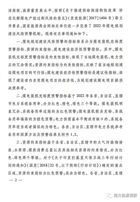 國家能源局關(guān)于發(fā)布2022年煤電規(guī)劃建設(shè)風(fēng)險(xiǎn)預(yù)警的通知