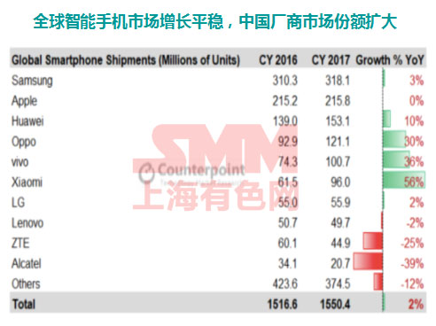 全球智能手機(jī)市場(chǎng)增長(zhǎng)平穩(wěn),中國廠商市場(chǎng)份額擴(kuò)大