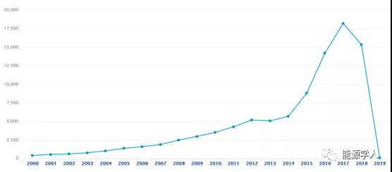 2000年至2014年國內(nèi)鋰離子電池經(jīng)歷了緩慢的發(fā)展期,2015年至2017年呈現(xiàn)爆發(fā)式增長,同時鋰離子電池專利申請量達(dá)到頂峰,來到18186件,可見國內(nèi)企業(yè)對于鋰離子電池領(lǐng)域科研技術(shù)的重視。另外我們從趨勢圖中還能看到,18年全球鋰離子電池專利申請數(shù)降幅明顯,僅有兩萬余件,究其原因在于國內(nèi)知識產(chǎn)權(quán)行業(yè)政策環(huán)境發(fā)生了變化。國家在18年相繼推行各項(xiàng)政策落實(shí)。包括《專利質(zhì)量提升工程實(shí)施方案》、《關(guān)于規(guī)范專利申請行為的若干規(guī)定》、《關(guān)于專利申請相關(guān)政策專項(xiàng)督查的通知》、《關(guān)于進(jìn)一步做好2018年專利質(zhì)量提升工作的通知》等,堅決遏制低質(zhì)量申請,嚴(yán)厲打擊非正常申請。鋰離子電池領(lǐng)域作為重點(diǎn)監(jiān)管領(lǐng)域之一,提高行業(yè)專利質(zhì)量,以強(qiáng)力手段保障科技創(chuàng)新,助力鋰離子電池企業(yè)發(fā)展。這是國家對鋰離子電池行業(yè)研發(fā)技術(shù)和專利態(tài)勢的更高層次關(guān)注的體現(xiàn)。