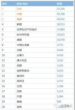 如圖2所示為鋰離子電池全球?qū)@暾垍^(qū)域分布圖,可以看出,鋰離子電池全球?qū)@暾垍^(qū)域分布,日本、中國、美國位列前三,專利數(shù)量分別為97205件、95398件、46541件,約占申請總量的70%。日本作為鋰離子電池專利申請大國,近幾年申請數(shù)量相對平穩(wěn),從2010年起,年均5000余件,可見其國企業(yè)對該領(lǐng)域的持續(xù)專利布局的重視。