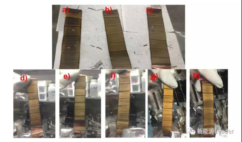 下圖為循環(huán)一定次數后的電池解剖后的負極照片,從圖中能夠看到盡管有的電池在壽命末期發(fā)生了明顯的容量跳水,但是負極并沒有觀察到大良的析鋰現象,這也表明上面我們觀察到的容量跳水現象并非是由于負極析鋰導致的。