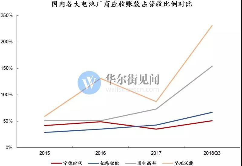 與國內有代表性的三家高端玩家對比,補貼退坡對國內電池廠商的毛利率影響顯而易見,但寧德時代在應收賬款占營收比例一項顯示出了更為優(yōu)秀的議價能力。