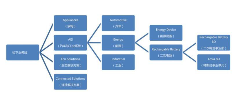 在松下如今的四大業(yè)務中,二次電池隸屬于AIS(汽車與工業(yè)系統)的能源業(yè)務分支,旗下又細分為二次電池事業(yè)部與特斯拉事業(yè)單元兩大部門。