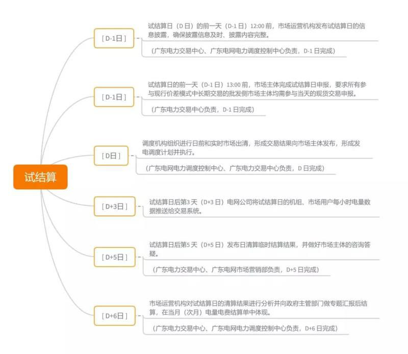 試結(jié)算日(D 日)的前一天(D-1 日)12:00 前,市場(chǎng)運(yùn)營機(jī)構(gòu)發(fā)布試結(jié)算日的信息披露,確保披露信息及時(shí)、披露內(nèi)容完整。(廣東電力交易中心、廣東電網(wǎng)電力調(diào)度控制中心負(fù)責(zé),D-1 日完成)