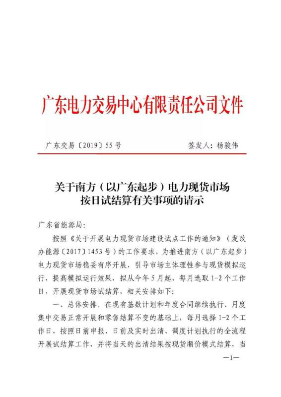 近日廣東省電力中心為了推進(jìn)南方電力現(xiàn)貨市場(chǎng)穩(wěn)妥有序開展,引導(dǎo)市場(chǎng)主體理性參與現(xiàn)貨模擬運(yùn)行,同時(shí)提高模擬運(yùn)行效果。特向廣東省能源局提出《關(guān)于南方(以廣東起步)電力現(xiàn)貨市場(chǎng)按日試結(jié)算有關(guān)事項(xiàng)的請(qǐng)示》(以下簡稱《請(qǐng)示》):擬從今年 5 月起,每月選取 1-2 個(gè)工作日,開展現(xiàn)貨市場(chǎng)試結(jié)算。