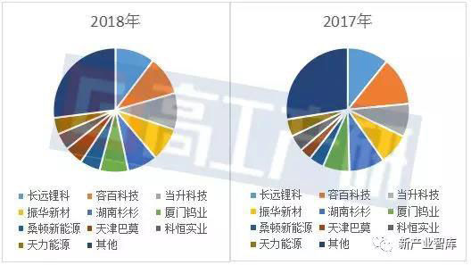 2017-2018年中國(guó)NCM材料市場(chǎng)競(jìng)爭(zhēng)格局(單位:%)