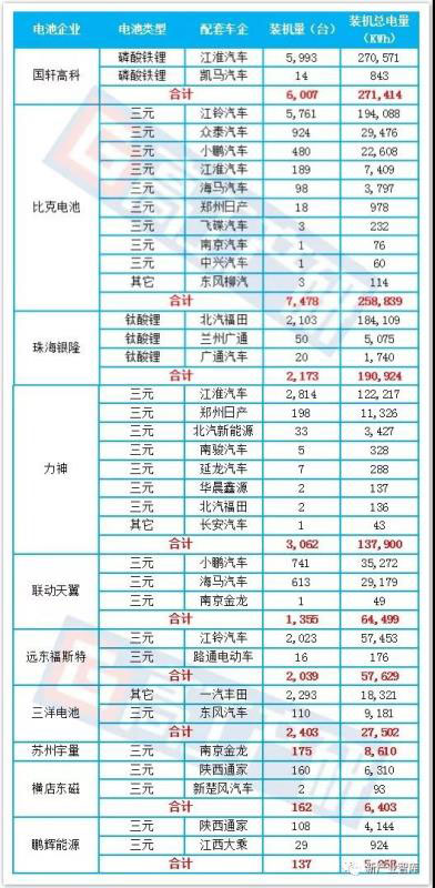 備注:電池類型中的其它表示為未標明具體類型的鋰離子電池
