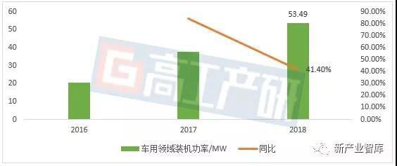高工產(chǎn)研氫電研究所(GGII)數(shù)據(jù)顯示,2018年中國氫燃料電池在車用領(lǐng)域的裝機功率為53.49MW,同比增長41.40%。