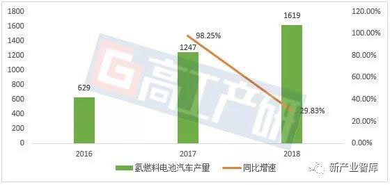 2018年中國氫燃料電池汽車產(chǎn)量1619輛,其中專用車909輛,客車710輛。相較于2017年,中國氫燃料電池汽車產(chǎn)量同比增長29.83%。