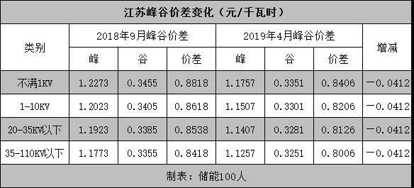 “儲(chǔ)能100人”發(fā)現(xiàn),在一般工商業(yè)電價(jià)下調(diào)的情況下,其峰價(jià)和谷價(jià)也發(fā)生改變。經(jīng)過(guò)測(cè)算,峰谷價(jià)差縮小了0.0412元/KWh,幅度超過(guò)此番電價(jià)下調(diào)的0.031元/KWh。據(jù)業(yè)內(nèi)人士反映,當(dāng)前江蘇用戶(hù)側(cè)儲(chǔ)能一些項(xiàng)目的盈利情況,也就是每度電幾分錢(qián)上下。