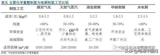其中氯堿副產(chǎn)品制氫,由于是在現(xiàn)有氯堿工業(yè)體系中,收集原先直接排掉的副產(chǎn)品氫氣,對資源、環(huán)境不增加任何新的負(fù)擔(dān),且成本適中(1.3-1.5元/m3),所制取的氫氣純度高達(dá)99.99%,是目前較為適宜的制氫方式。但此種制氫方式受規(guī)模所限,無法滿足遠(yuǎn)期氫能源車放量后的需求。長期來看,綜合考慮環(huán)保、成本等因素,除氯堿、電解制氫外的氫產(chǎn)能應(yīng)由化學(xué)重整制氫工藝滿足。