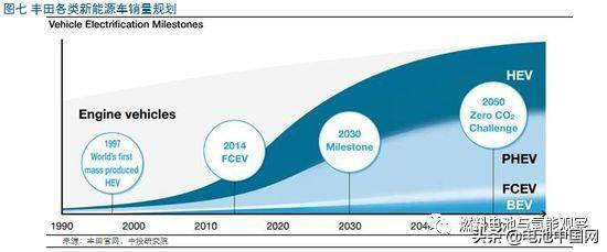 市場層面上,即使在目前氫燃料電池技術(shù)領(lǐng)先的豐田的遠(yuǎn)期戰(zhàn)略規(guī)劃中,各類技術(shù)也都有