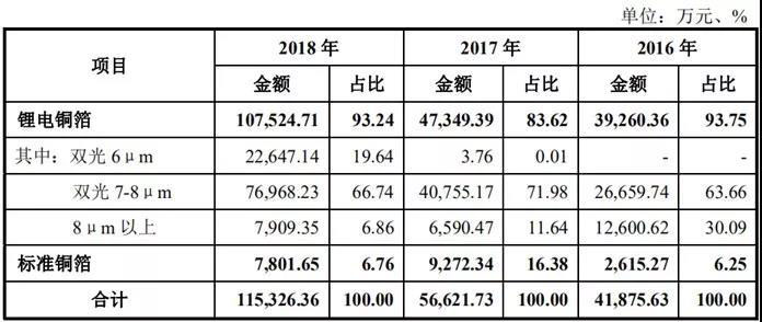 嘉元科技主要產(chǎn)品為超薄鋰電銅箔和極薄鋰電銅箔,主要應(yīng)用于鋰離子電池行業(yè),最終應(yīng)用在新能源汽車(chē)動(dòng)力電池、儲(chǔ)能設(shè)備及電子產(chǎn)品等領(lǐng)域。招股書(shū)顯示,2016年至2018年,嘉元科技實(shí)現(xiàn)營(yíng)業(yè)收入分別為4.19億元、5.67億元、11.53億元人民幣,實(shí)現(xiàn)歸母凈利潤(rùn)分別為0.63億元、0.85億元和1.76億元人民幣。