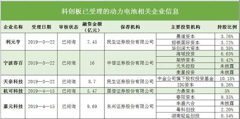 圖為科創(chuàng)板已受理的動(dòng)力電池相關(guān)企業(yè)信息