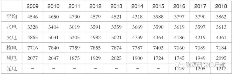 表4 2009~2018年發(fā)電設(shè)備利用小時數(shù)(單位:小時)