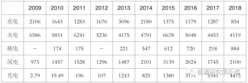 表3 2009~2018年各類發(fā)電新增裝機情況(單位:萬千瓦)
