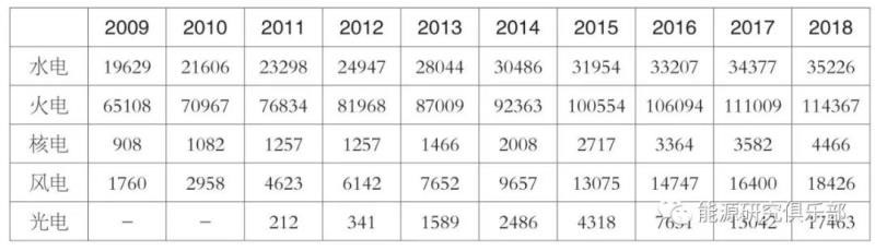 表2 2009~2018年全國電力裝機結(jié)構(gòu)(單位:萬千瓦)