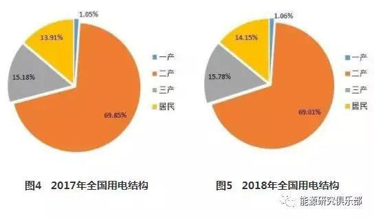由于2017、2018年數(shù)據(jù)已根據(jù)新標(biāo)準(zhǔn)重新分類,第一產(chǎn)業(yè)的“農(nóng)、林、牧、漁服務(wù)業(yè)”調(diào)整到第三產(chǎn)業(yè)后,第一、三產(chǎn)業(yè)用電增速無法與2016年之前相比。2018年與2017年相比,第三產(chǎn)業(yè)與居民生活用電增速均超過兩位數(shù),一產(chǎn)用電增速達9.8%。